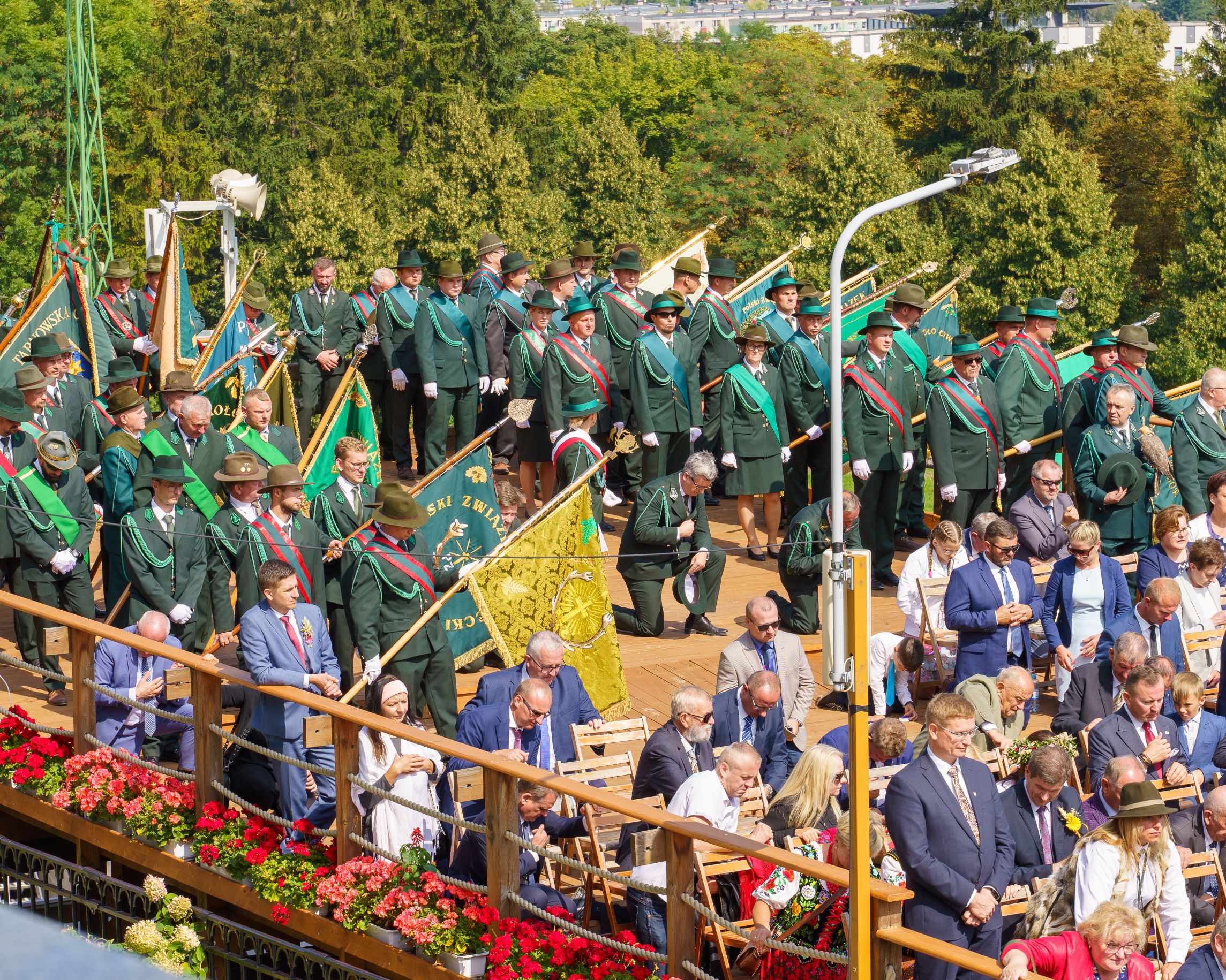 O godzinie 11.00 rozpoczęła się na Błoniach uroczysta msza święta w intencji rolników i płodów rolnych z udziałem Prezydenta RP Andrzeja Dudy. Mszy świętej na jasnogórskich błoniach przewodniczył ks. bp Jan Piotrowski ordynariusz diecezji Kieleckiej, przewodniczący Komisji EP ds. misji, który pobłogosławił wieńce żniwne. W imieniu myśliwych dary ołtarza złożyli Łowczy Krajowy Paweł Lisiak i Łowczy Okręgowy PZŁ w Częstochowie Piotr Czapla. Wśród kapłanów w mszy uczestniczył Kapelan Krajowy Myśliwych Sylwester Dziedzic. Myśliwi wystawili blisko 40 pocztów sztandarowych, a o oprawę muzyczną zadbał zespól sygnalistów Złoty Róg.